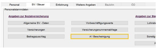 Personalstamm > SV/Steuer > A1-Bescheinigung