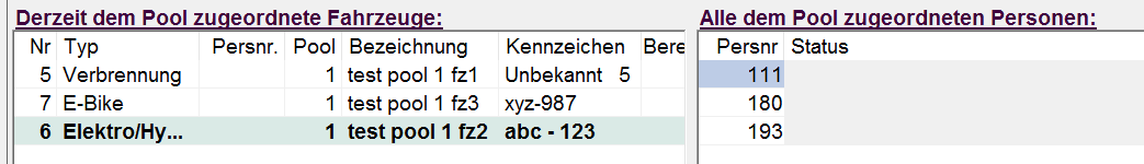 Derzeit dem Pool                                    In der Fuhrparkmaske wird über die Auswahl „Wird genutzt von“    Zugeordnete Fahrzeuge                         der Pool bestimmt.