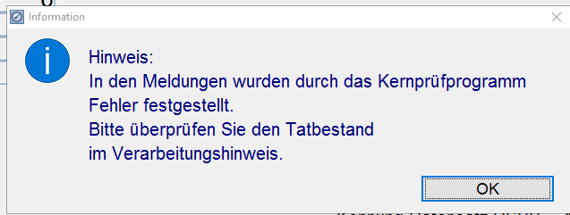 Werden in der Kernprüfung Fehler festgestellt, erscheint der nachfolgende Hinweis: