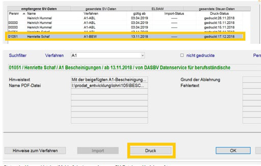 Status der Versanddateien (Meldedialog) > empfangene SV-Dateien > Verfahren A1